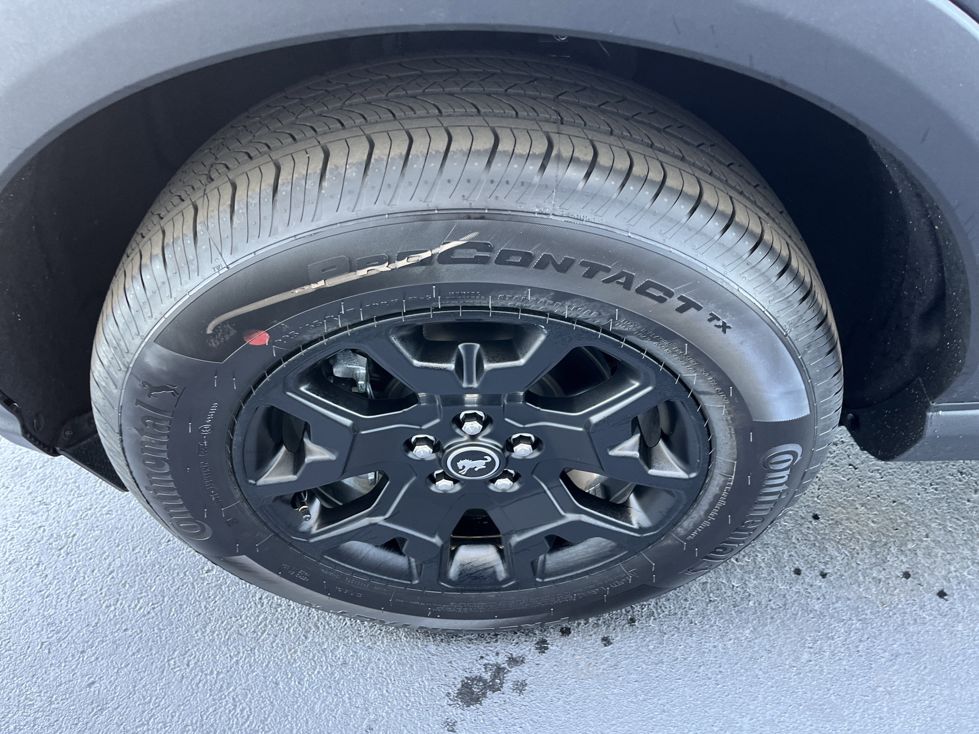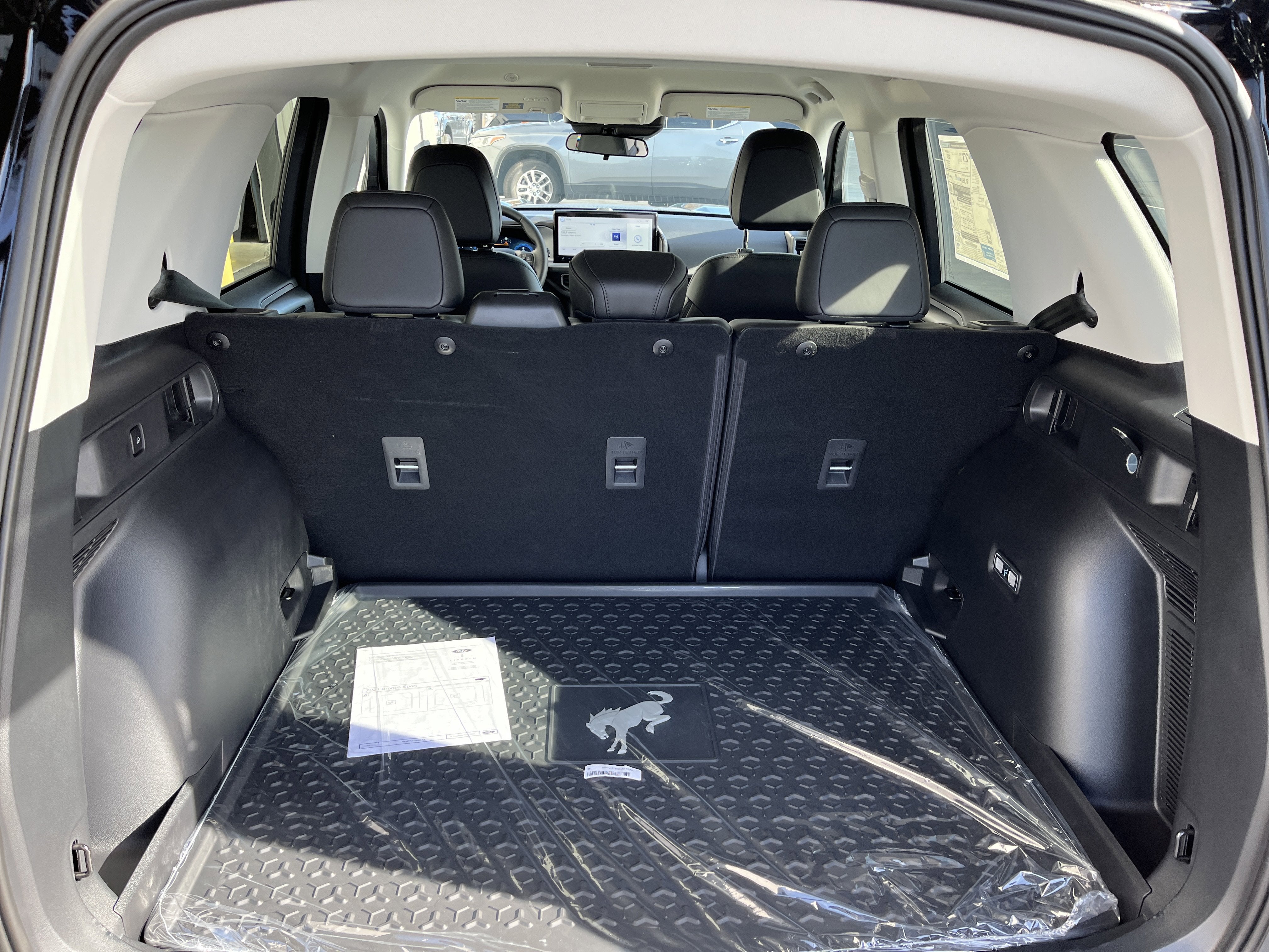 - BLACK APPEARANCE PACKAGE -inc: textured matte black hood graphic and unique badges w/black accents Painted Shadow Black Roof Cargo Mat Wheels: 17 Matte Black-Painted Aluminum Front & Rear Floor Liners w/o Carpet Mats Liftgate w/Black BRONCO SPORT Lettering modified smoke chrome Ford oval Carbon Black Grille w/Black BRONCO Lettering