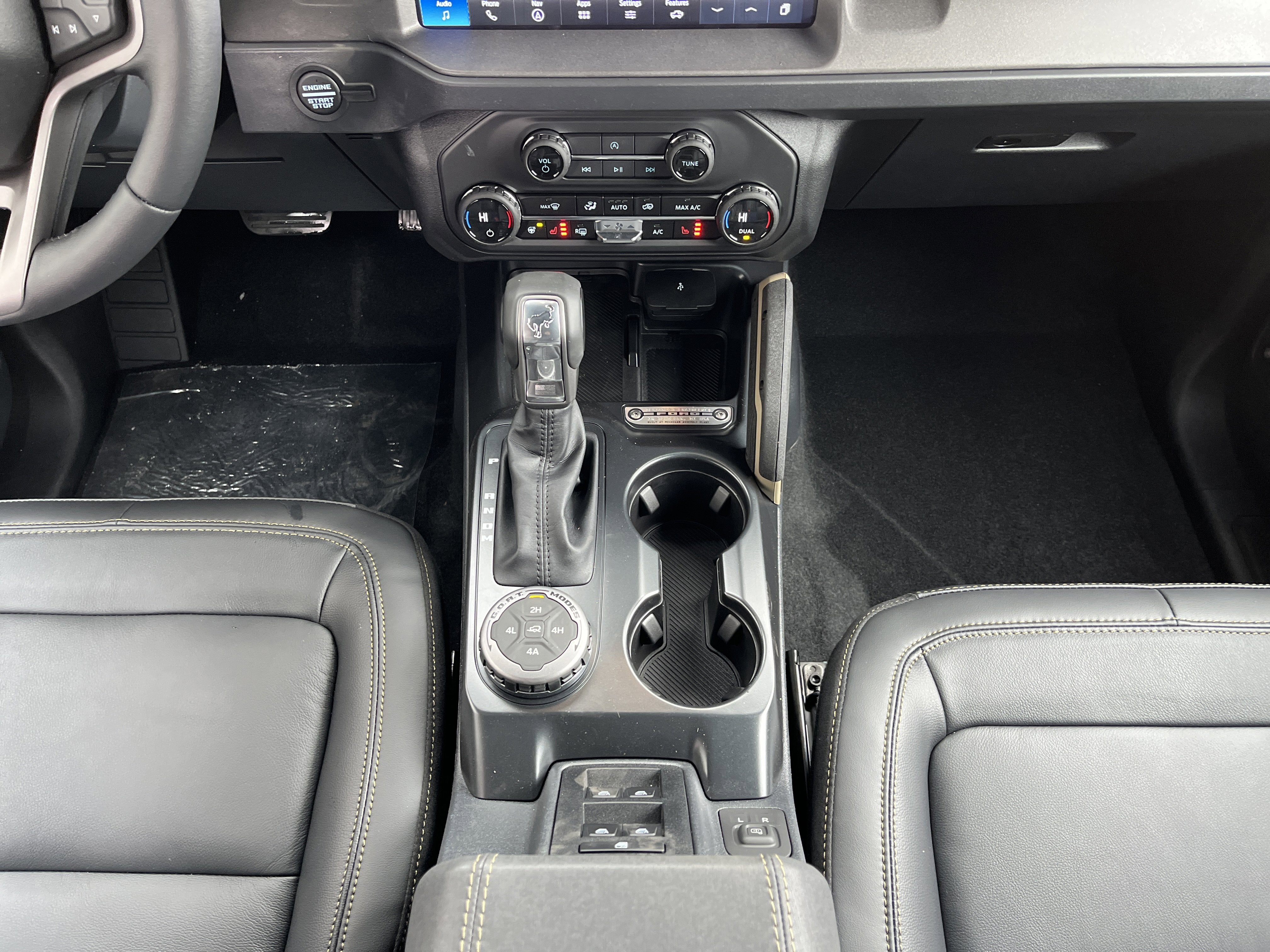- BLACK ONYX LEATHER-TRIMMED/VINYL BUCKET SEATS -inc: 10-way power driver seat 8-way front passenger seat second row armrest w/2 beverage holders and front driver/passenger seat back MOLLE strap system Carpet flooring replaces the standard rubberized flooring