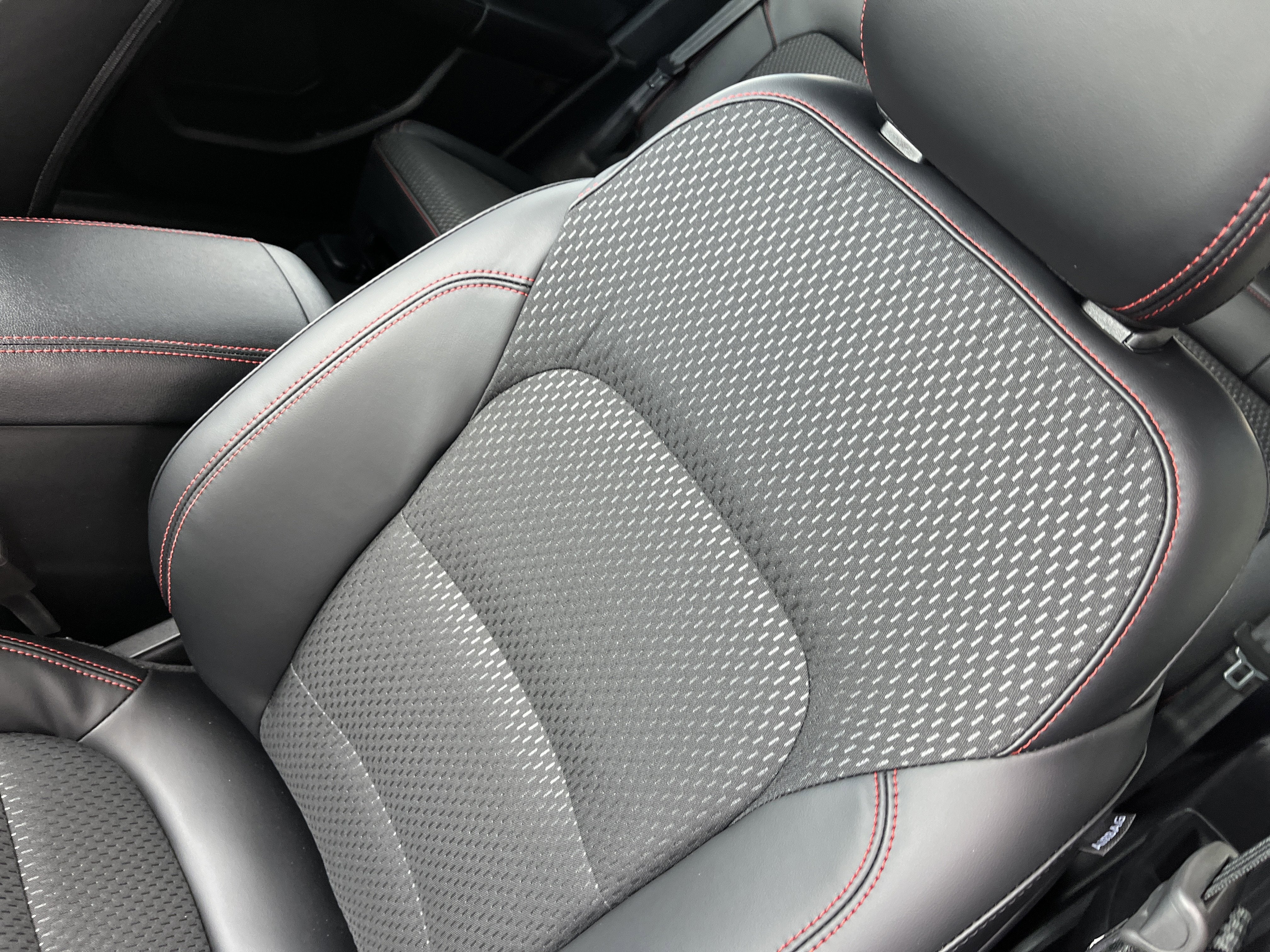 - EBONY PARTIAL VINYL/CLOTH HEATED FRONT SPORT CONTOUR BUCKET SEATS W/RED STITCHING