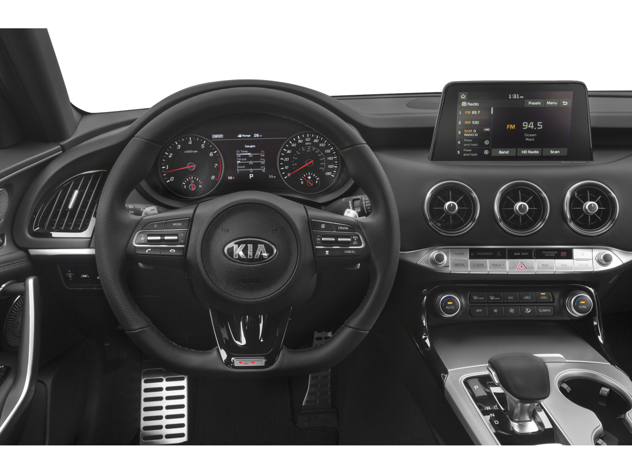 - Radio: AM/FM/MP3/HD/SiriusXM harman/kardon Audio -inc: 720 Watts, navigation system, 8" color touch-screen display, 15 speaker premium surround sound including dual underseat subwoofers, QuantumLogic, ClariFi digital music restoration, UVO eServices infotainment system, support for Android Auto and Apple CarPlay, USB input, Bluetooth wireless connectivity and steering-wheel-mounted controls